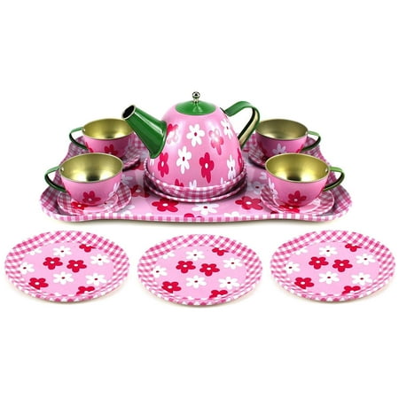 Metal tea set super sweet 15 piece metal tea set a lovely traditional tea set to enjoy elegant tea parties with family and friends beautifully decorated with delightfully delicate detail includes tea pot, serving tray, 4 cups and saucers, serving plate and 4 wooden cookies packaged in a lovely gift box. Gift/game card tins, coin/money tin boxes, christmas tins, tin mailbox, easter tin items, valentine gift tins, cigarette tins case, tin ashtray, candle tins, coaster tin set, watch tin case, bandage tins, tissue tins, tin tea set, watering can etc. The ceramic items would be safe in the. Get great deals on ebay! Girls tea sets are very colorful and cute!